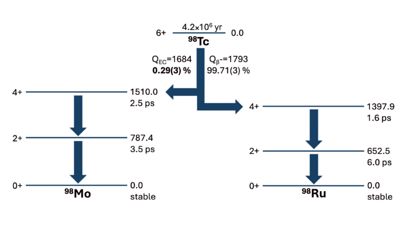 Коллективом исследователей кафедры ядерной химии Кёльнского университета впервые экспериментально зарегистрирован K-захват изотопа \(^{98}Tc\) ...