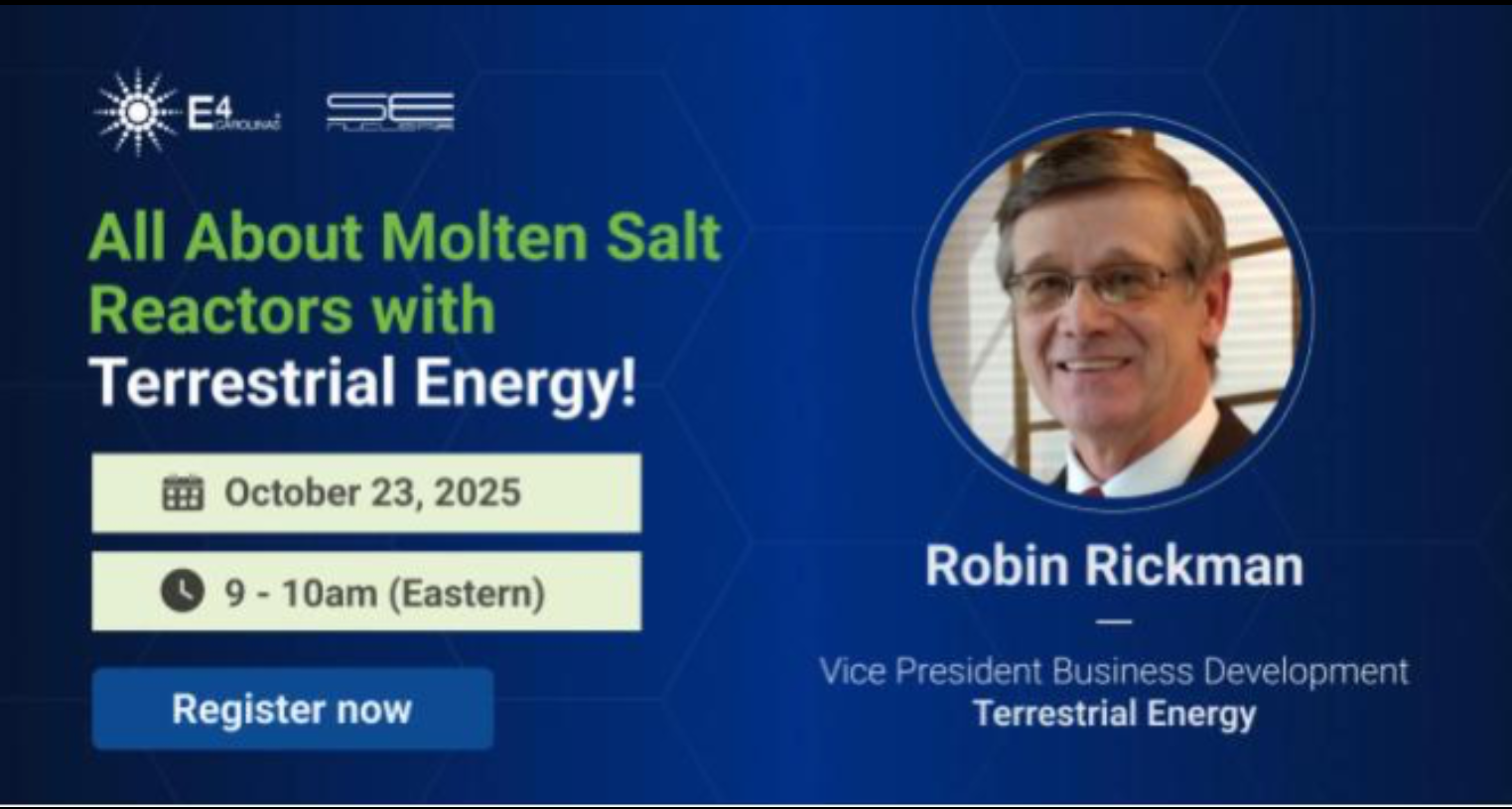 Совет по ядерной энергетике Юго-Востока (Southeast Nuclear Council) — инициатива организации «E4 Carolinas» — организует ежемесячную серию вебинаров, посвященных вопросам развития ядерной энергетики в юго-восточном регионе США. Очередной вебинар на тем... |